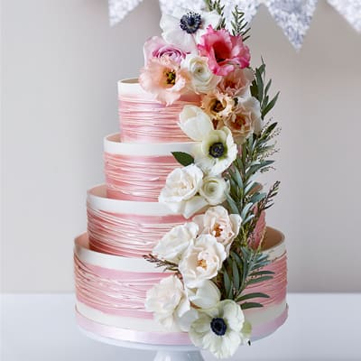 The partners can customize the size the sponge how many tiers they want ie 2 tier wedding cake 3 tier. Cakerstreet Limited offers you a lavish range of wedding cakes to choose from.