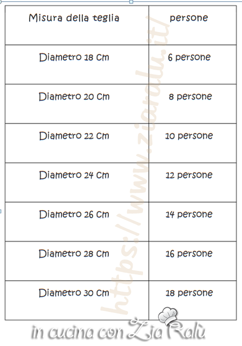 Ovviamente almeno riguardo le dosi rispetto alle persone si tratta di uno schema indicativo. Brava Simi hai avuto unottima idea. 15 20 25 cm 65 persone.